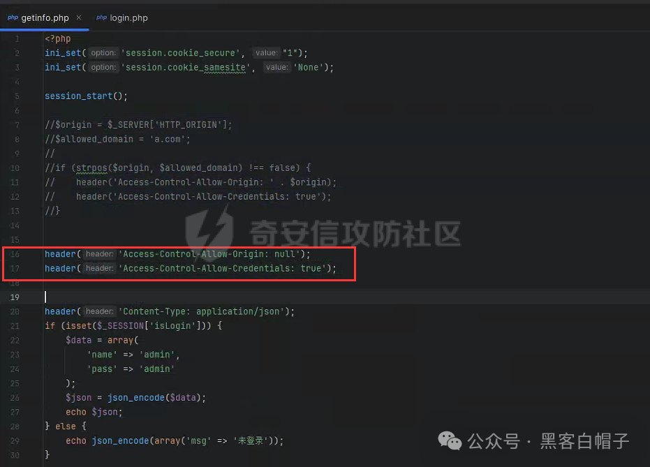 - Origin为空值:如果Origin为null,攻击者可以使用ifrmae标签进行绕过。