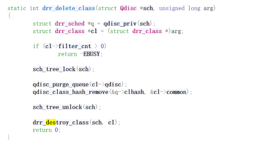 如果引用计数<=0,就可以调用到drr_destroy_class: