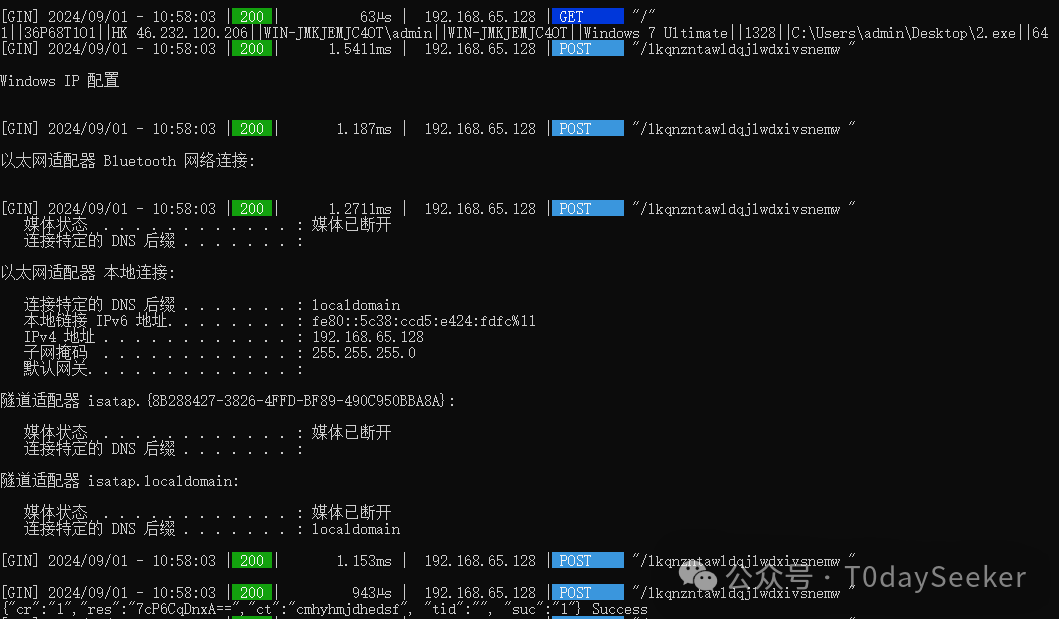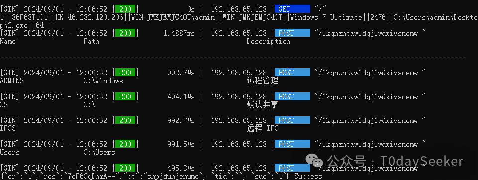 「为了能让大家能够更直观的对此样本的攻击场景进行实战化感受,笔者将文章中所涉及的控制端Demo程序共享于百度网盘中,大家可以关注笔者“T0daySeeker”公众号,发送“PGoshell后门”关键字获取下载链接。解压密码为“T0daySeeker”。为了避免控制端Demo程序被恶意使用,笔者对木马上线地址进行了限制:控制端Demo程序只接收192.168.XX.XX内网地址上线。」