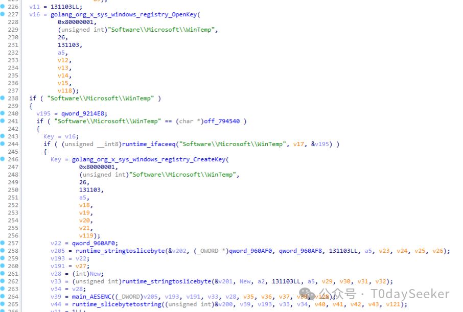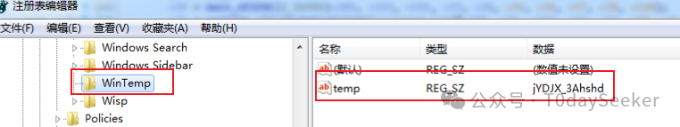 通过分析,发现样本运行后,将检测HKCU\Software\Microsoft\WinTemp注册表是否存在: