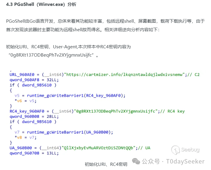 在梳理PGoshell后门的远控指令时,「笔者发现“知道创宇404实验室”报告中描述的远控指令字符串有点小问题(部分远控指令的字符串前后顺序错误),应该是分析人员直接从IDA中复制反编译字符串所致」。