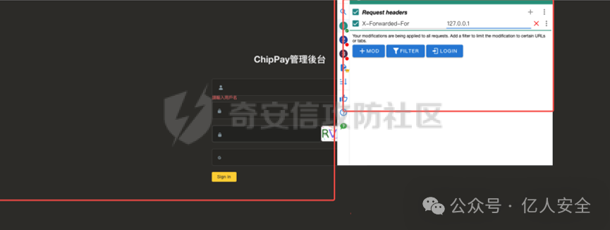 构造https://cashier.atest.com 访问之后401,添加xff头直接访问