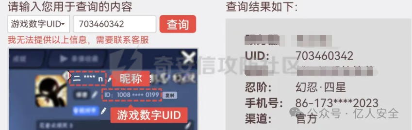 这里游戏uid是公开的,资料就能看到,不过手机号只有前三位和后四位