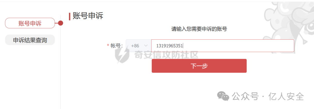 这里因为不知道目标账号的id,只能随机修改,因为手机号基本就跟id绑定,于是找到了申诉的功能点,这里输入手机号