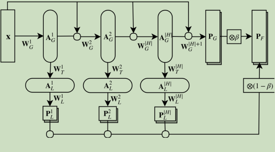 归版结构图,架构中是有2条信息流,全局信息流和局部信息流。全局信息流是通过每个级别类集的反向传播梯度加强了全局信息流内的局部层次关系,局部的所有输出,经级联起来,再由全局输出进行一致性池化操作,输出最后的结果。这种结构能发现整个类层次结构中的局部层次类关系和全局信息,更适合做层次分类。