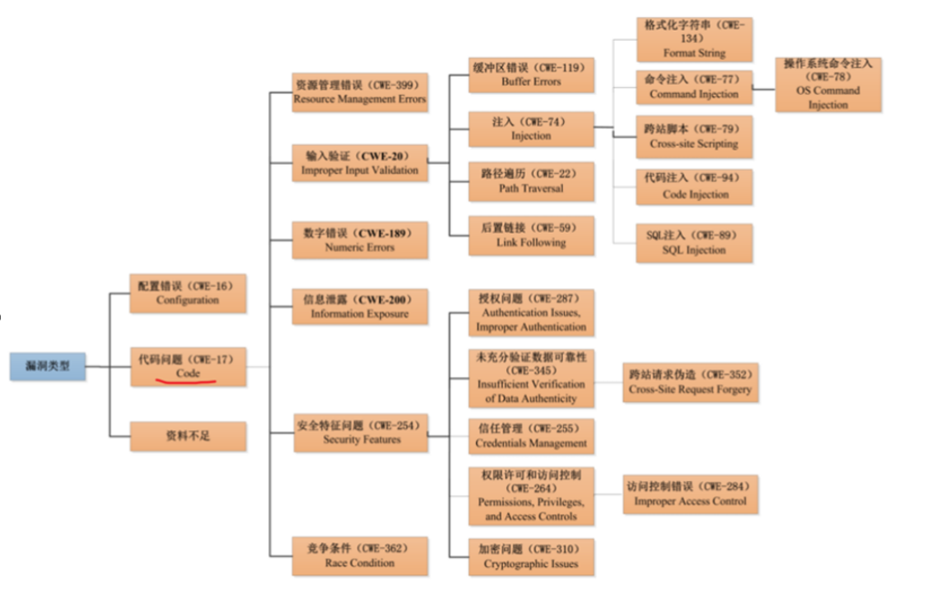 基于CWE官网中给出的常用高频漏洞类型,再结合CNNVD官网Top25漏洞类型,得出模型分类类别和层级关系。如图表3所示,常见的文本分类任务中,类目之间通常是正交的,即不存在包含关系。而层次分类则是一类特殊的文本分类任务,HMCN(Hierarchical Multi-Label Classification Networks)网络能达到层次分类的目的。