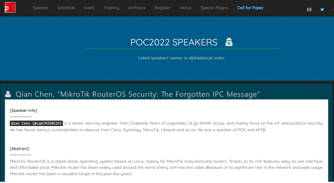 近日,奇安信代码安全实验室的研究成果LCDPwn: Breaking Enterprise-Things with Layer 2 Discovery Protocol Vulnerabilities Again 和 MikroTik RouterOS Security: The Forgotten IPC Message,分别入选2022年欧洲Black Hat安全大会的Briefings频道议题和韩国POC 大会议题。