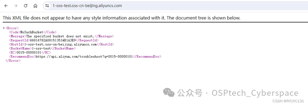 利用条件相对苛刻一些,需要域名曾解析并绑定了一个存储桶也就是网站托管,存储桶被删除,但域名解析的 CNAME未删除,此时访问时会显示NoSuchBucket。