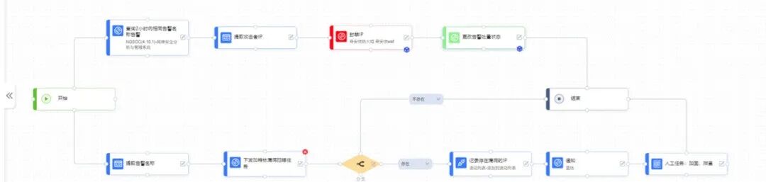 便完成了从发现攻击者企图攻击,到研判确认攻击成功,并详尽追踪攻击手法,同时使用SOAR自动化剧本在