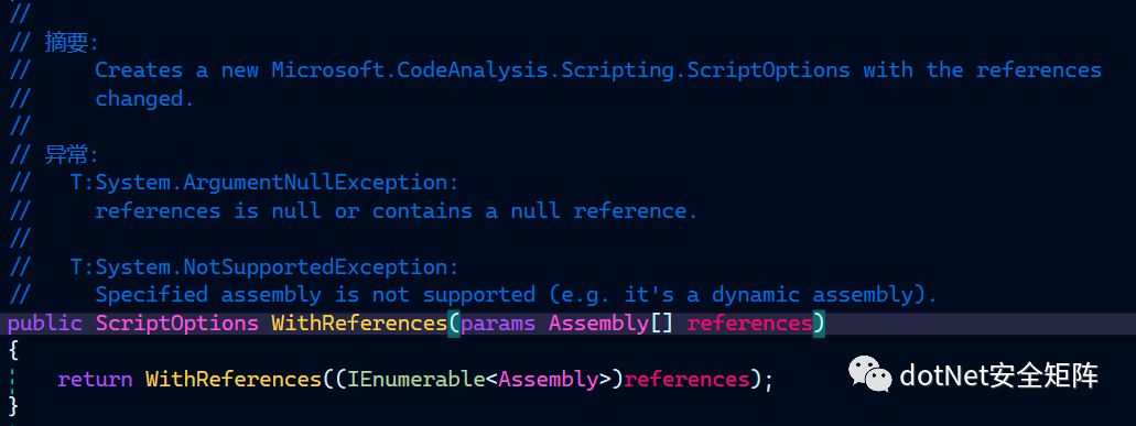 EvaluateAsync以异步线程任务的方式返回脚本执行后的结果,第二个参数项ScriptOptions.Default.WithReferences 表示引入的程序集