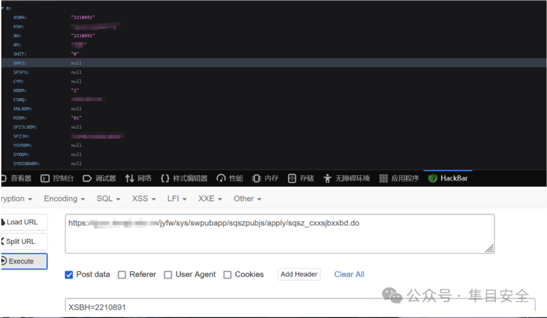 尝试修改XSBH的值,遍历其他可能的学生编号。