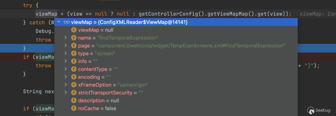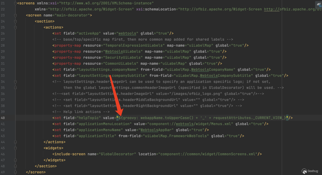 (因为mainDecoratorLocation由系统传递,会覆盖用户传递)的配置文件都满足漏洞条件,例如:TempExprScreens.xml、StatsScreens.xml(本文使用18.12.12版本进行复现,版本不同可能不太一样)。