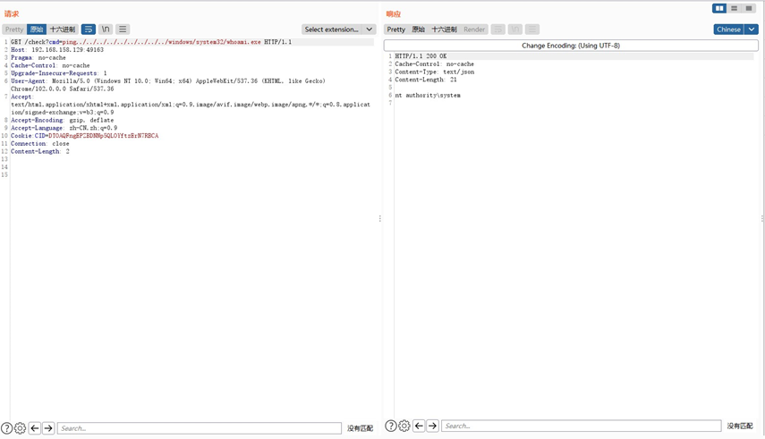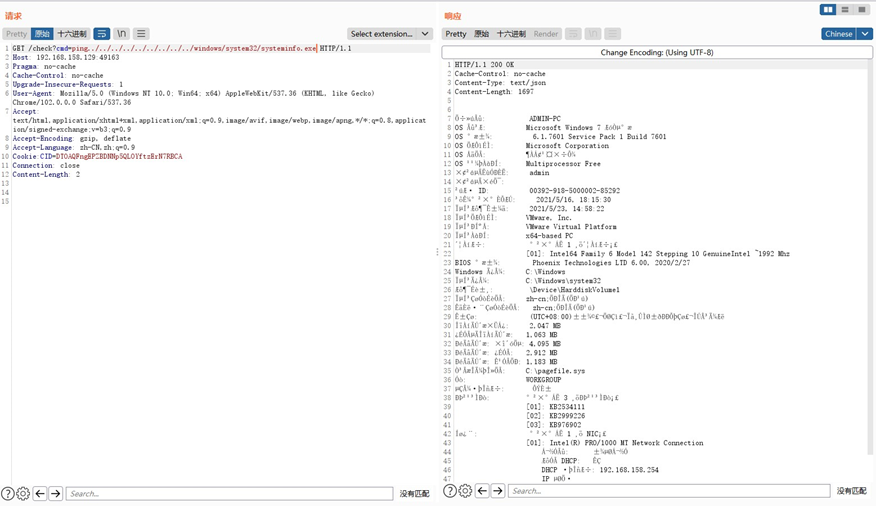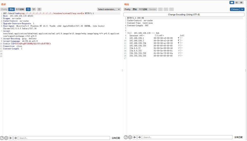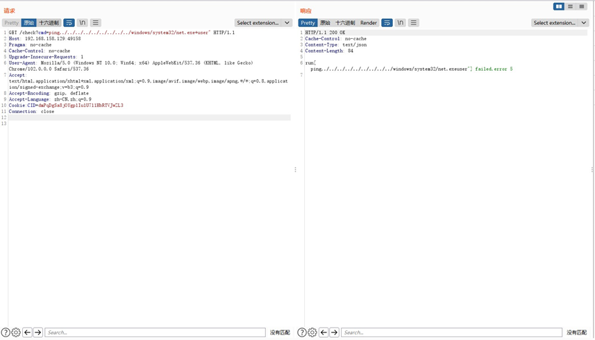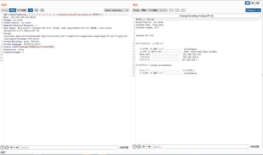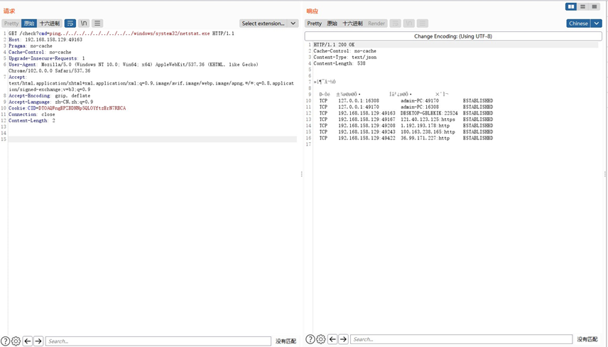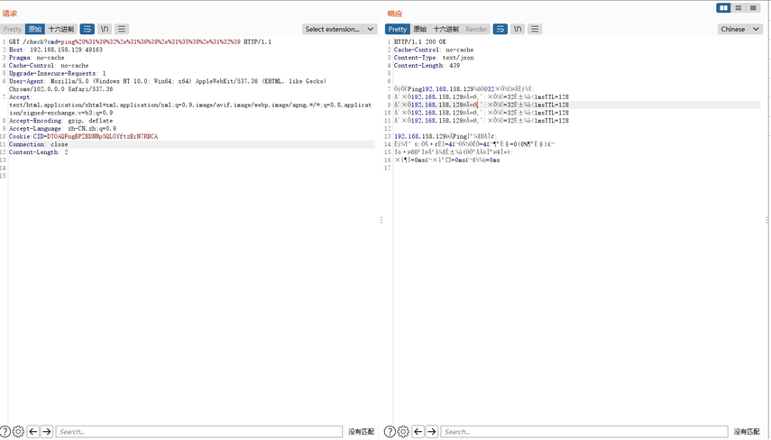 我们可以先使用他的正常命令 ping 来查看命令执行漏洞是否存在