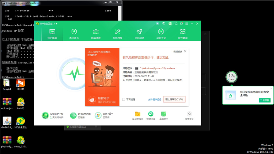 3.直接调用tasklist.exe 来获得进程信息我们可以看到是存在 360 进程的