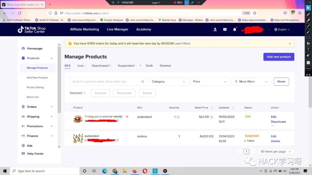 当我在TikTok 卖家账户( https://seller-id.tiktok.com/ )上创建产品时,这个 XSS 发现开始了