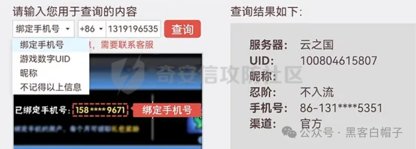 这里游戏uid是公开的,资料就能看到,不过手机号只有前三位和后四位