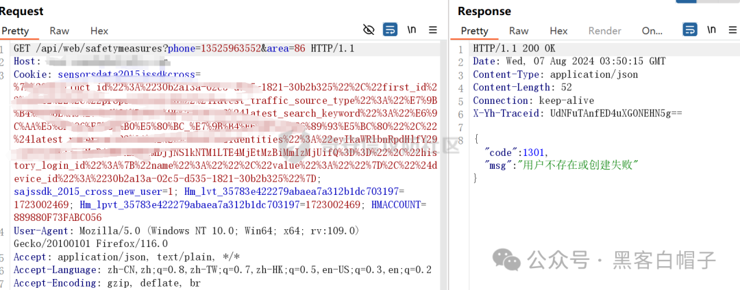 输入不对的手机号会提示错误,因为我们知道前三位还有后四位,爆破起来还是很快的