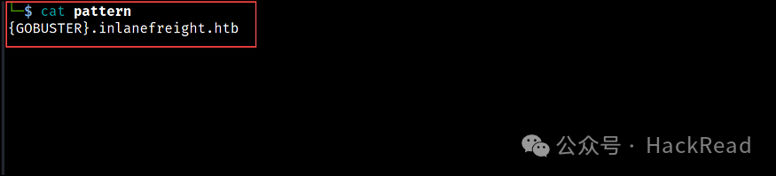 在 Gobuster 中,我们在称为模式文件的文本文件中定义此信息,该文件通过-p标志传递。您可以在下面的图中看到模式文件的示例。