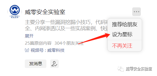 现在只对常读和星标的公众号才展示大图推送,建议大家能把威零安全实验室“设为星标”,否则可能就看不到了啦!