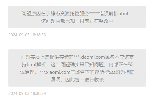 在2024-09-03 17:36 提交给某SRC后,某SRC认为并不是上传点对于文件格式的上传限制存在缺陷,而是认为存储桶本来就不应该解析html文件,并且拿出了pdf的xss忽略标准。