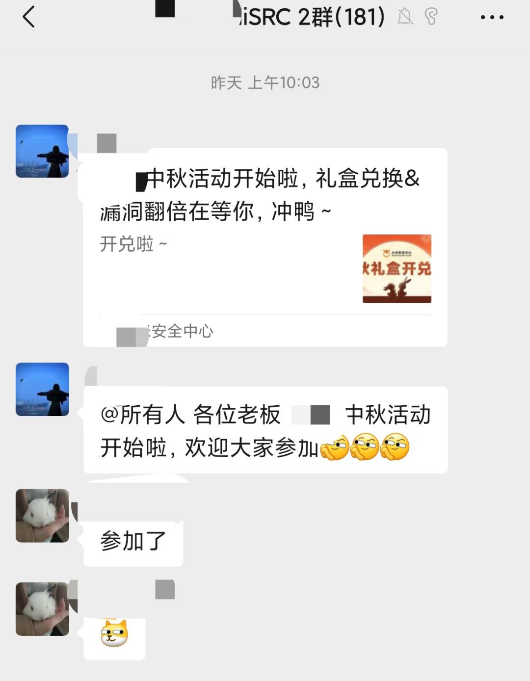 为了方便师傅们交流学习,我特意创建了一个群聊。内部会分享一些脱敏的漏洞报告,渗透测试实战案例,更有若干大牛巨佬分享经验。后续还会提供一些福利包括送书,小礼物等等,欢迎各位师傅进群交流