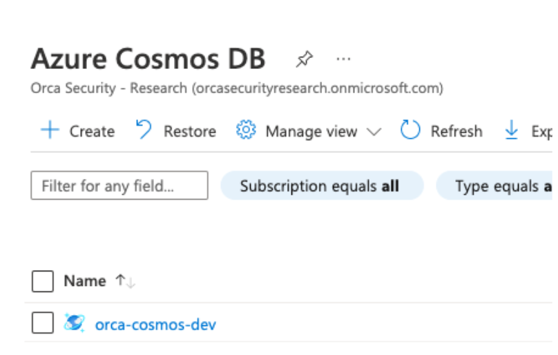 Research/providers/Microsoft.DocumentDB/databaseAccounts/orca-cosmos-