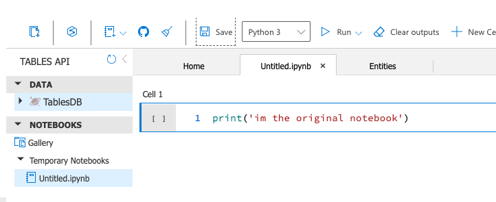 然后,我们通过退出Notebook本身(点击X符号)来检查更新后的Notebook,然后通过点击Tables API标题右侧的Refresh(刷新)按钮来刷新表/Notebook:
