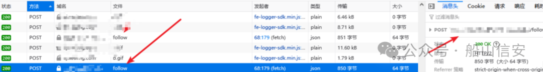 好!符合预期,这里确实存在xss漏洞,那么我们如何把这个危害进行扩大呢,我们都知道xss主要是因为js的问题,而js是可以发起http请求的,那么这里我们就有一个思路了(当时也是看了大佬挖掘b站xss漏洞的启发),我们抓取api,然后自己编写一段请求代码,只要别人访问我们的作品(或者我们在别人作品底下进行评论),都会触发这段js代码从而发起请求。借助一些xss在线平台,编写以下代码,通过fetch发起请求,让其他用户自动关注我的账号。