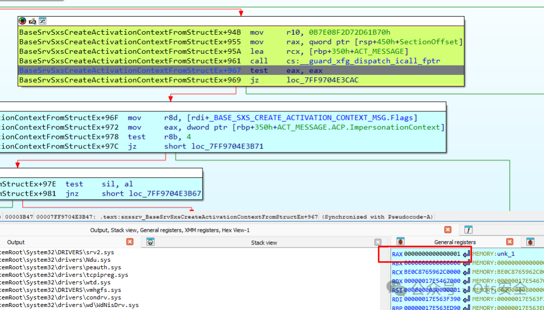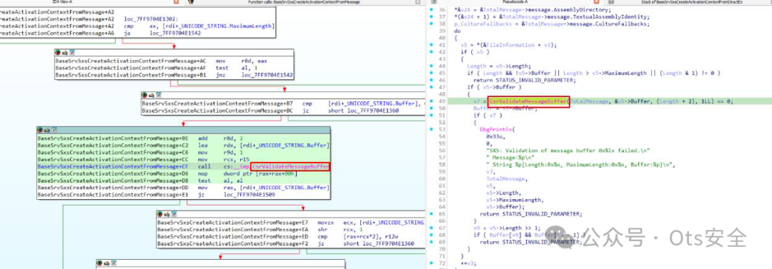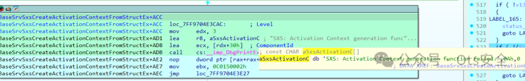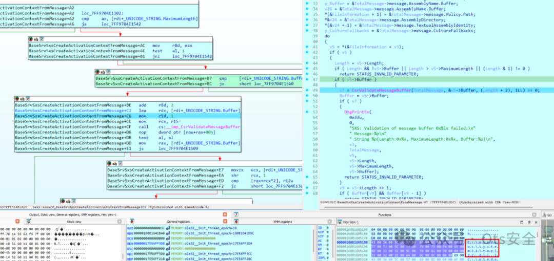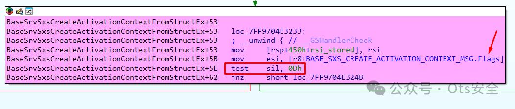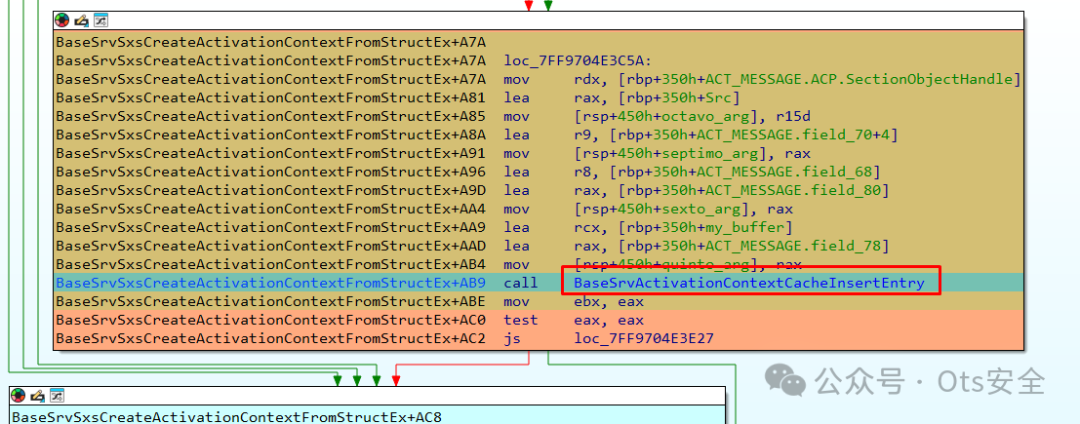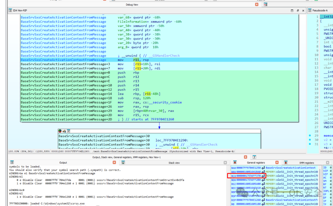 当使用正确的包调用CSRSS服务器时,它会在属于模块sxssrv.dll的BaseSrvSxsCreateActivationContextFromMessage函数中收到。