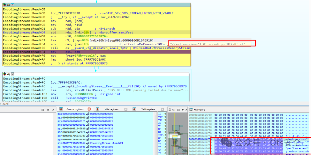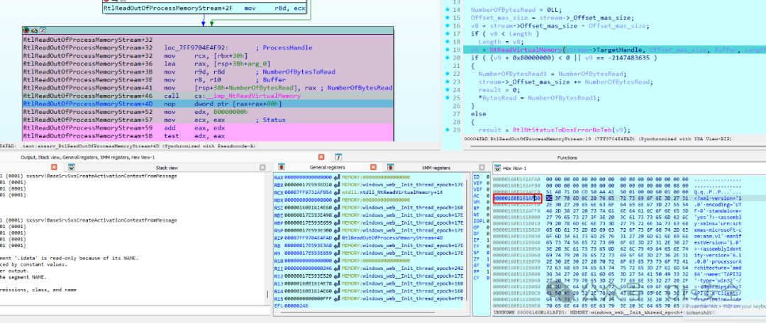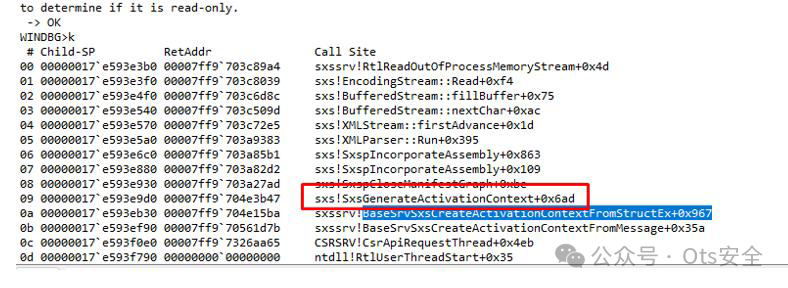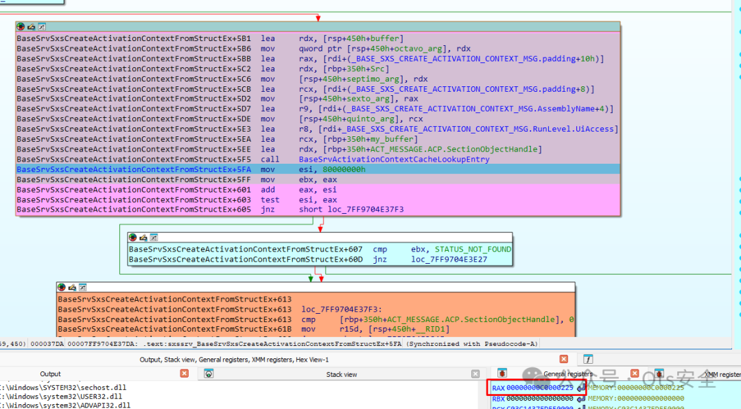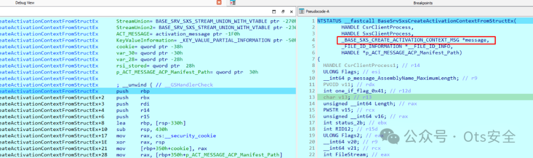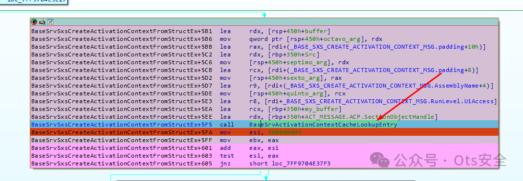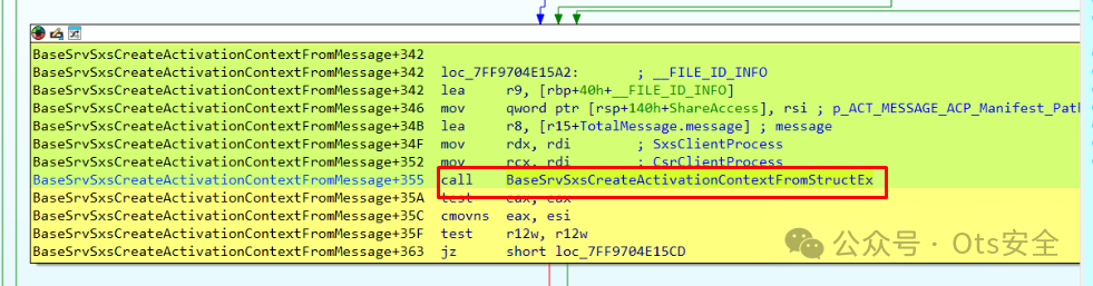 当使用正确的包调用CSRSS服务器时,它会在属于模块sxssrv.dll的BaseSrvSxsCreateActivationContextFromMessage函数中收到。