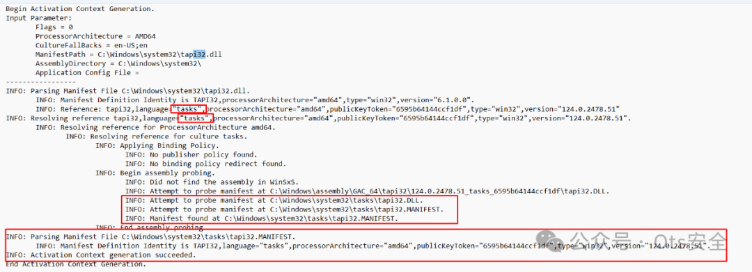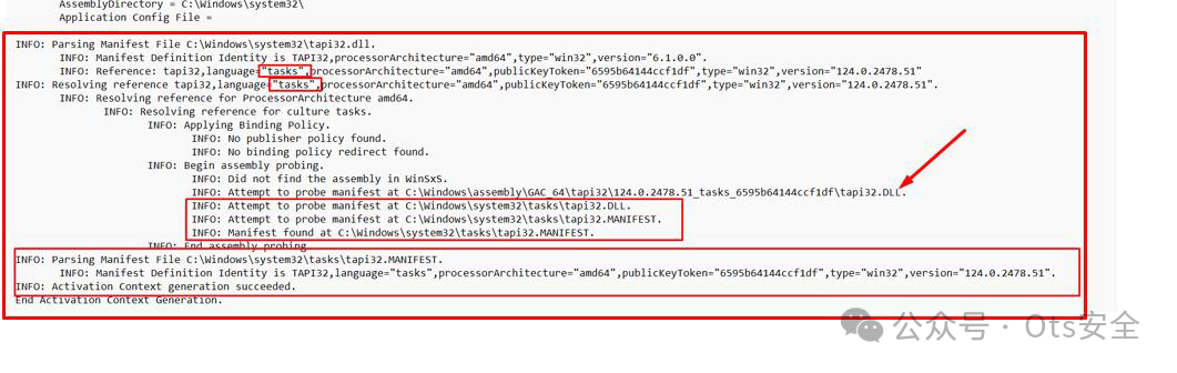 接下来,它将解析TAPI32.manifest 文件内容。如果有错误,它将在SXS TRACE日志中显示该错误,这样可以更轻松地纠正错误。