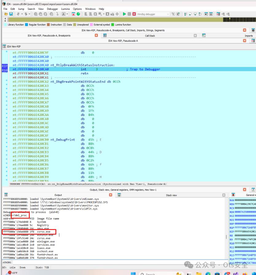 我使用 IDA PRO 和 Windbg 插件调试内核: