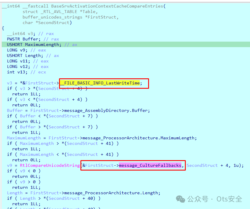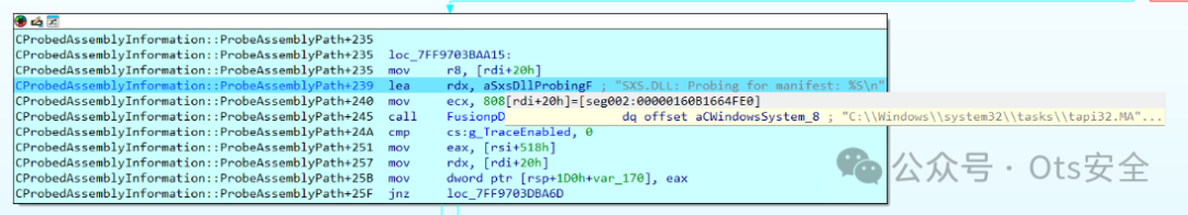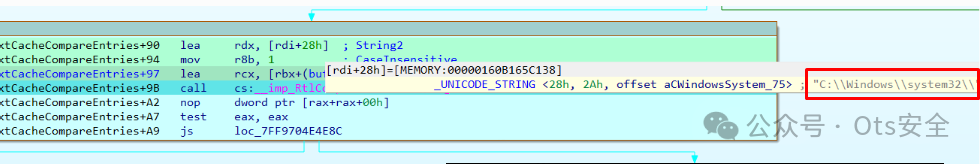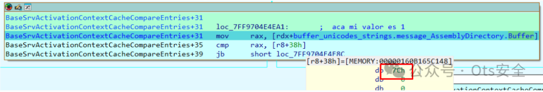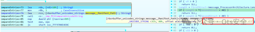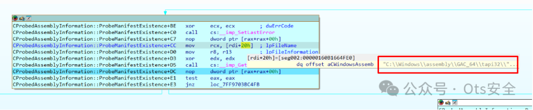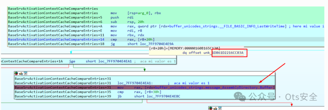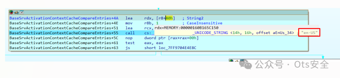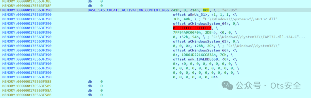 之后,由BaseSrvActivationContextCacheCompareEntries函数再次进行比较,该函数由BaseSrvSxsCreateActivationContextFromStructEx调用。现在 tapi32.dll 的条目也在缓存中。
