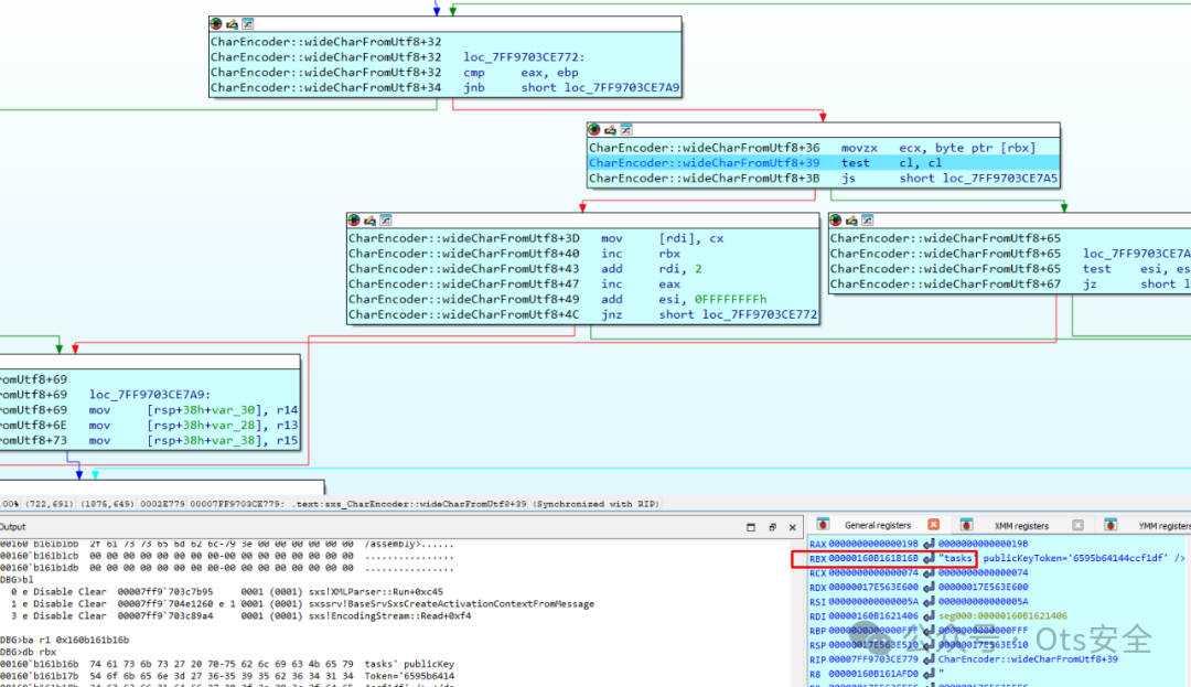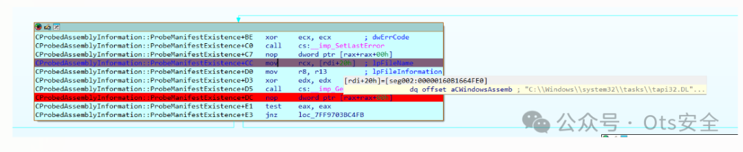 如果继续放置断点来查看它使用路径的位置,它会在读取tapi32.manifest文件内容的EncodingStream::Read中停止。