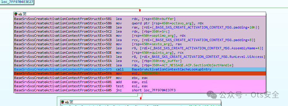 经过其他一些小检查后,它会调用BaseSrvSxsCreateActivationContextFromStructEx,这是激活过程中最重要的函数: