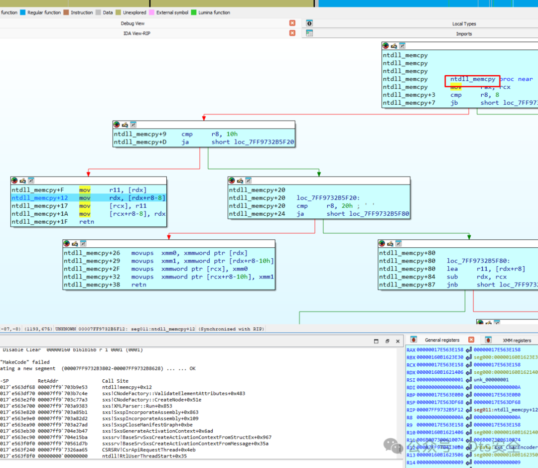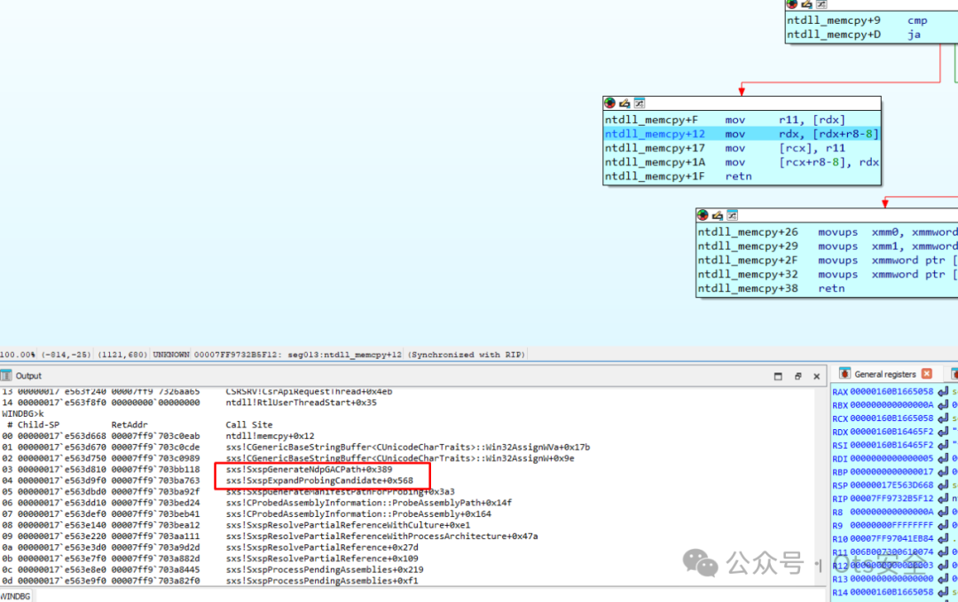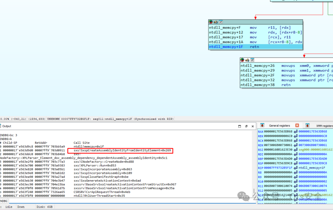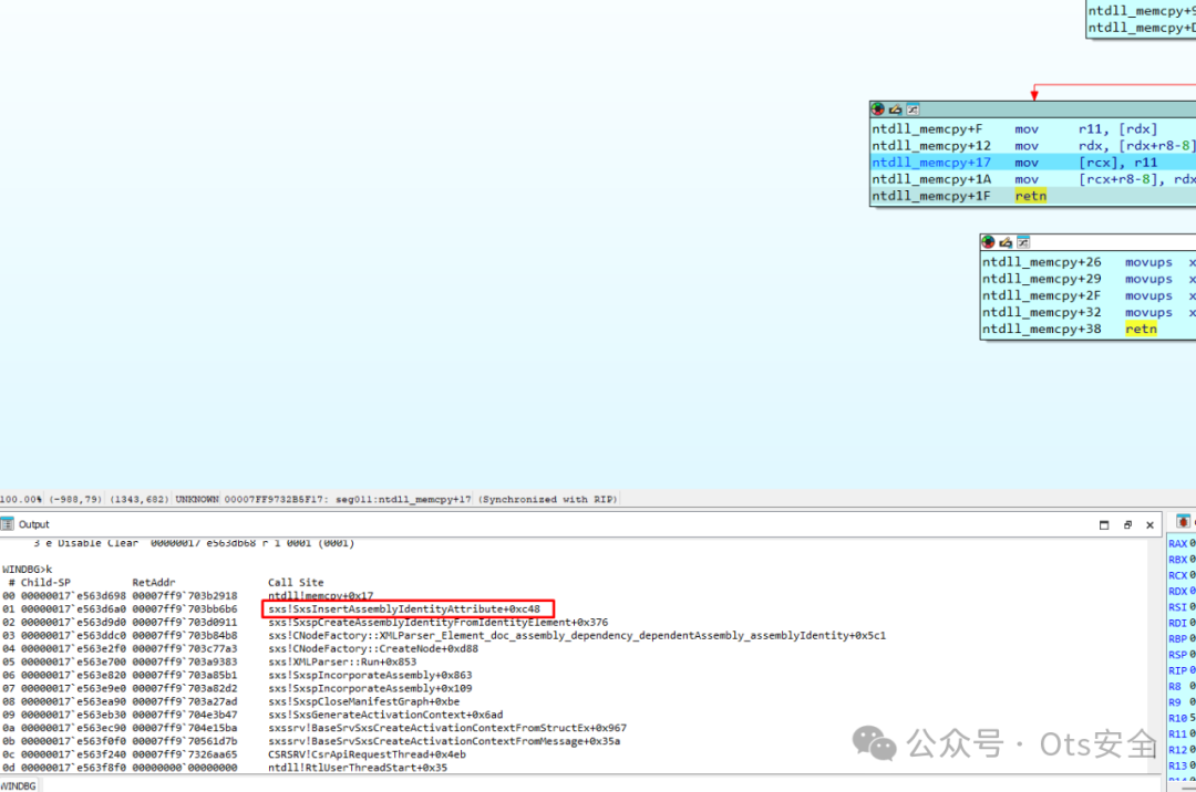 它再次在 memcpy 中停止,这次从SxsInsertAssemblyIdentityAttribute +0xc48 调用:
