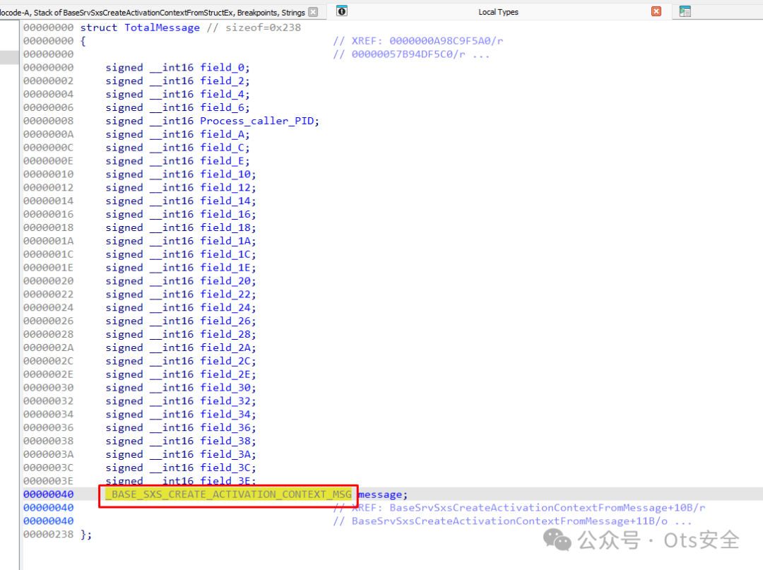 TotalMessage结构包的前 0x40 字节为HEADER ,后跟嵌入的激活上下文消息,其结构为_BASE_SXS_CREATE_ACTIVATION_CONTEXT_MSG。