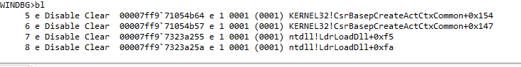 如果包正确,应该到达csrss进程的sxssrv模块中的BaseSrvSxsCreateActivationContextFromMessage函数。所以,在调试远程内核时,需要将上下文切换到此进程。然后,需要重新加载用户模式符号以在其上放置断点: