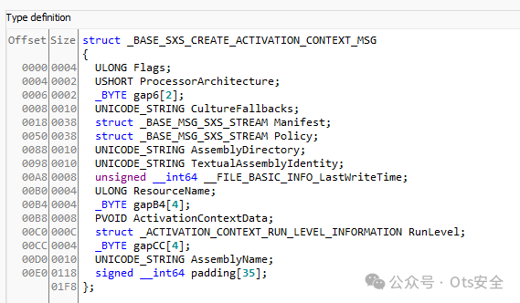以下是_BASE_SXS_CREATE_ACTIVATION_CONTEXT_MSG结构: