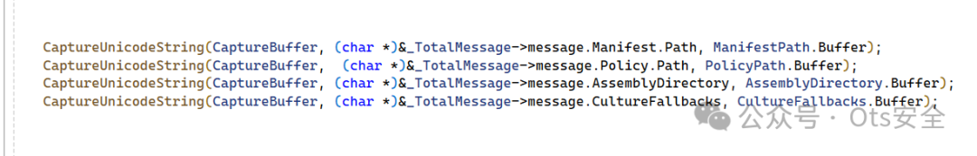 在我的 DLL 代码中,调用了CaptureUnicodestring 函数。最终调用了CsrCaptureMessageString: