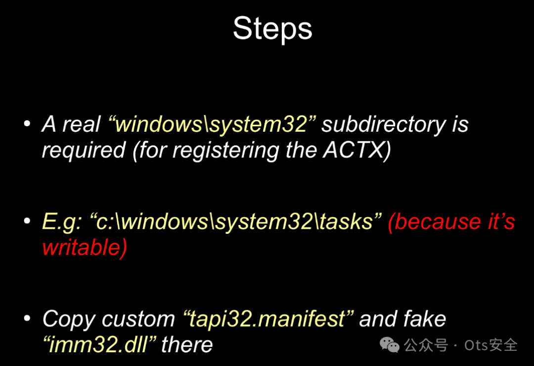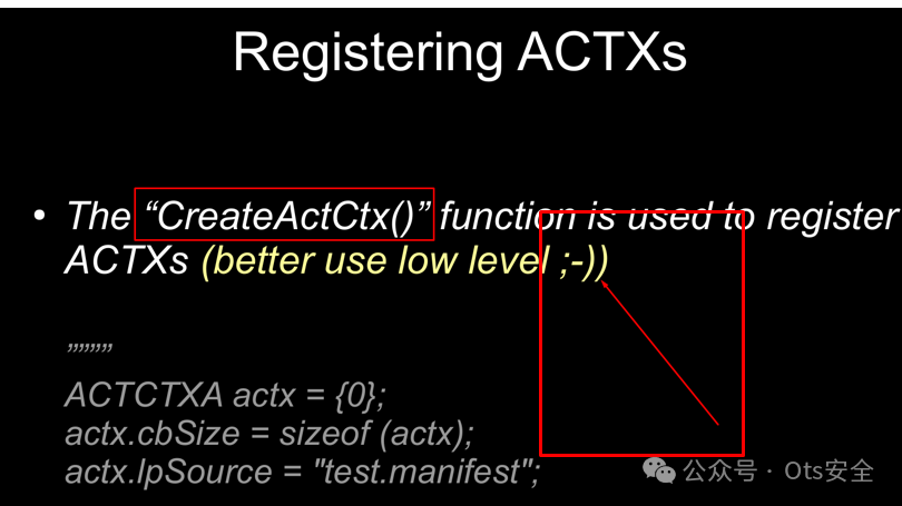 Nicolas 的演示幻灯片建议使用 LOW LEVEL。但是,从眨眼的表情可以看出,在没有补丁的情况下利用此漏洞显然使用CreateActCtx并不是更好的选择。