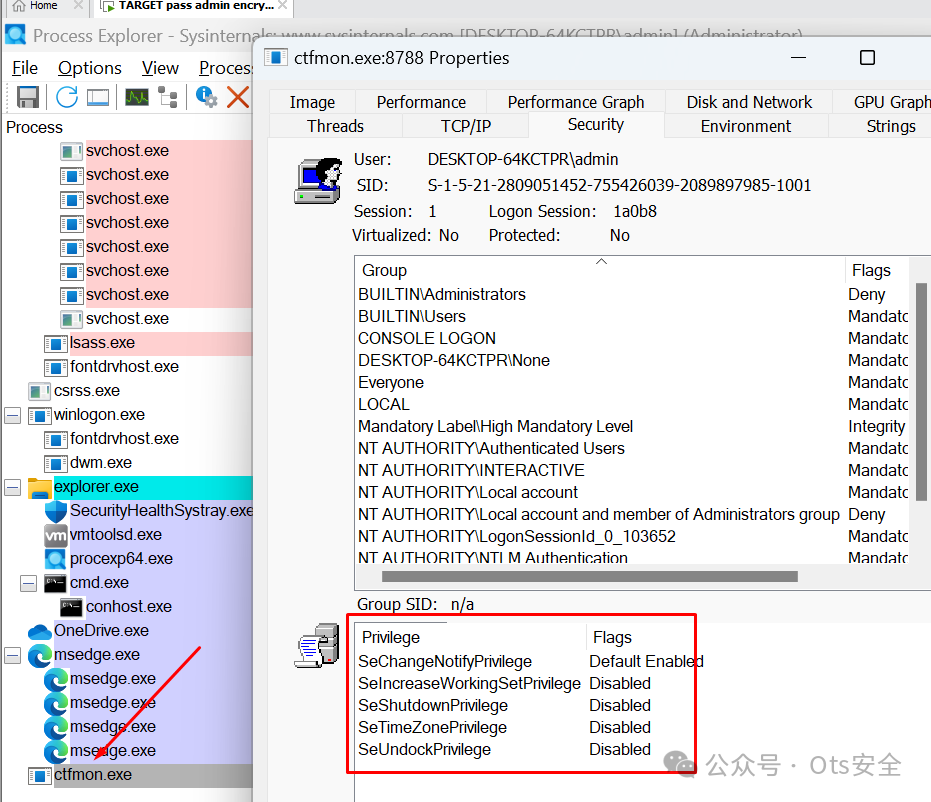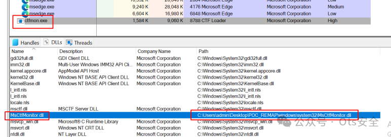 5.验证 DLL 是否已加载到以高完整性级别运行的 CTFMON 进程中:
