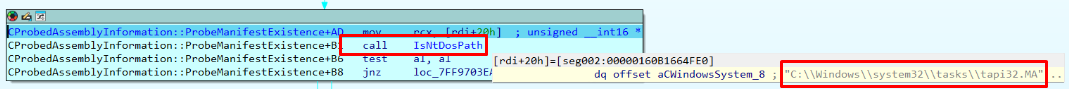 从那里开始,它似乎正在任务中“探测” tapi32.manifest:
