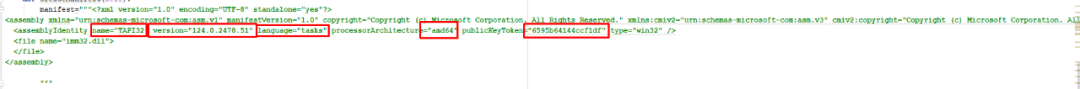 在记事本中打开 tapi32.dll,可以看到收到的 XML 嵌入清单与文件中包含的清单相同。