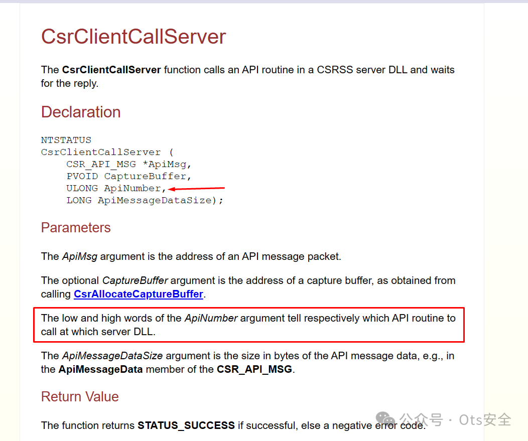 Geoff Chappell 的博客提供了有关 CsrClientCallServer 的更多详细信息: