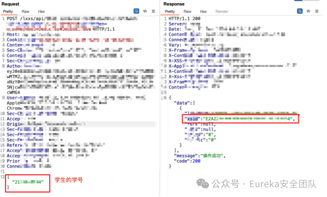 /lxxs/api/xxx接口中的参数就是学生的学号,响应中的xsid的值正好跟第一个接口中的id值完全相同,这下思路就豁然开朗了。