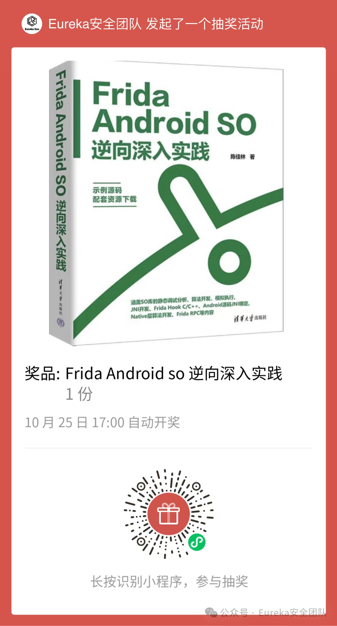 将随机抽出一名幸运儿获得149💰-《Frida Android SO逆向深入实践》一本!